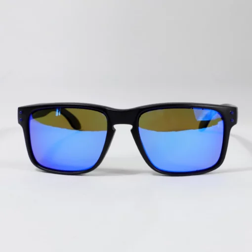 Las clásicas gafas de sol negras tienen detalles azules y lentes reflectantes azules. Las lentes polarizadas UV400 bloquean el 100 % de los rayos UVA y UVB dañinos. Marco de policarbonato liviano y de primera calidad.